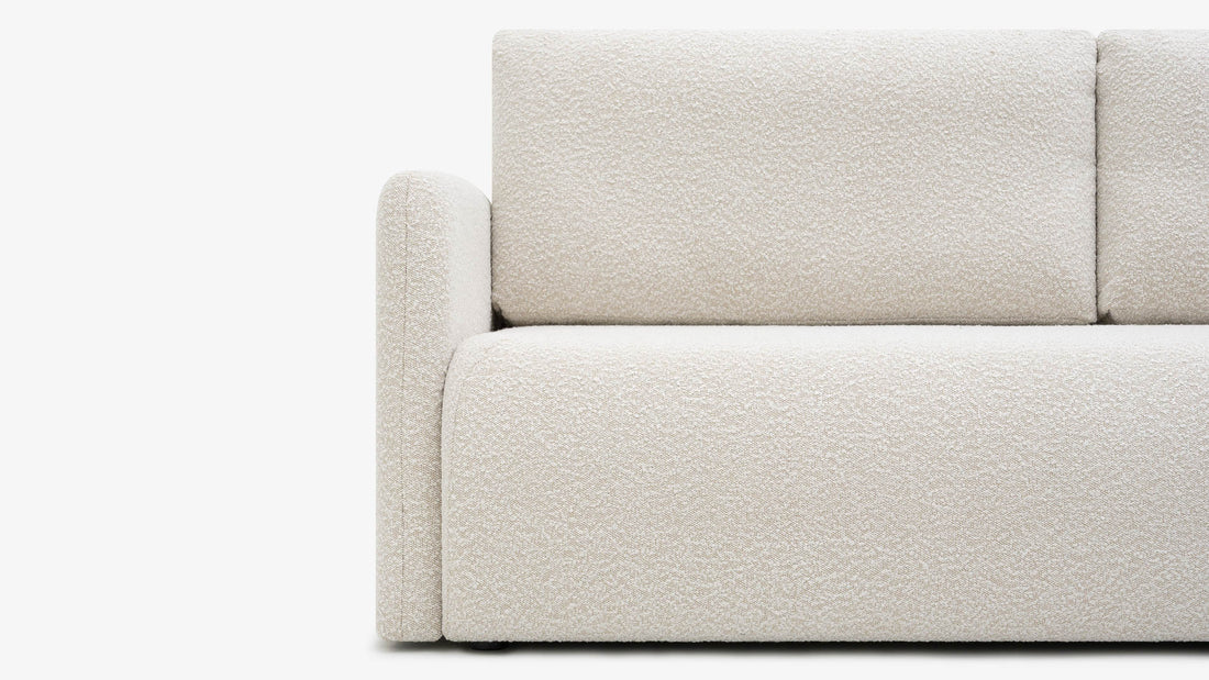 Legend to klasyczna tkanina typu bouclé o miękkiej, pętelkowej strukturze, która nadaje sofie przytulny, nowoczesny charakter i dobrze sprawdza się w codziennym użytkowaniu.