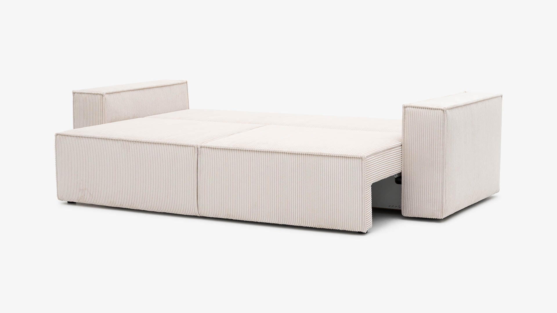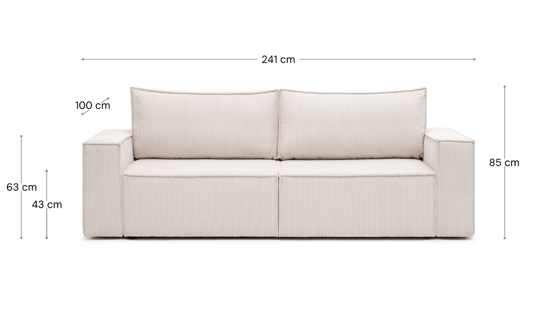 Sofa ELMA rozkłada się do przodu na automacie DL, tworząc szeroką i wygodną powierzchnię spania. Dzięki zastosowaniu tych samych materiałów w siedzisku oraz oparciu komfort snu pozostaje równy na całej powierzchni — bez względu na to, gdzie śpisz.