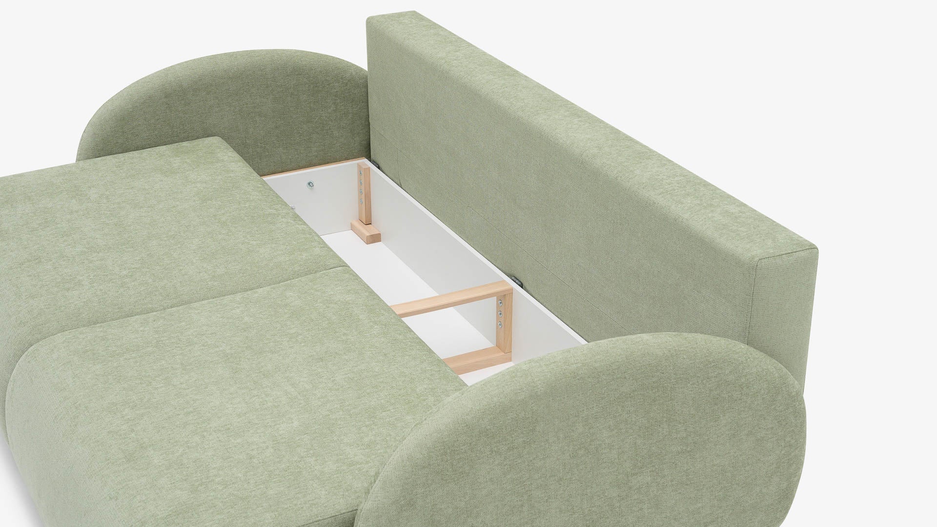 Sofy ELMA zaprojektowane są nisko, do samej ziemi, dzięki czemu pod siedziskiem zawsze znajduje się duży, w pełni wykorzystany pojemnik. To praktyczna przestrzeń na pościel, koce i wszystko to, co chcesz mieć pod ręką, ale poza zasięgiem wzroku.