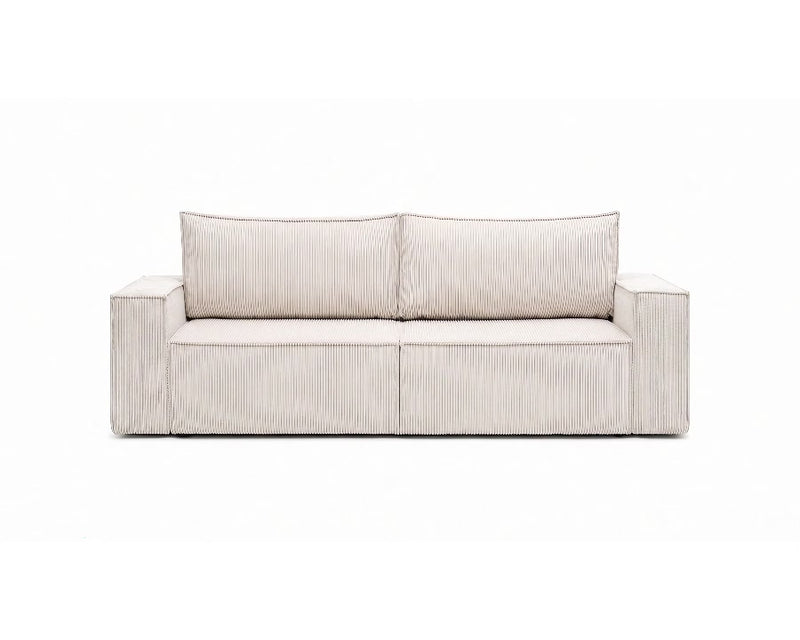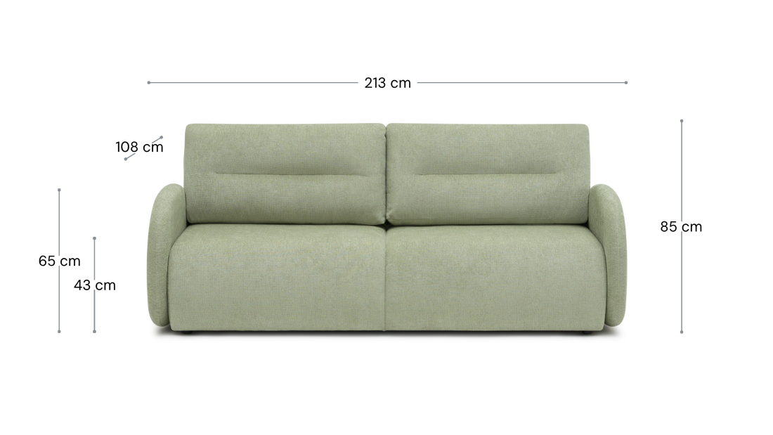 Sofa ELMA rozkłada się do przodu na automacie DL, tworząc szeroką i wygodną powierzchnię spania. Dzięki zastosowaniu tych samych materiałów w siedzisku oraz oparciu komfort snu pozostaje równy na całej powierzchni — bez względu na to, gdzie śpisz.