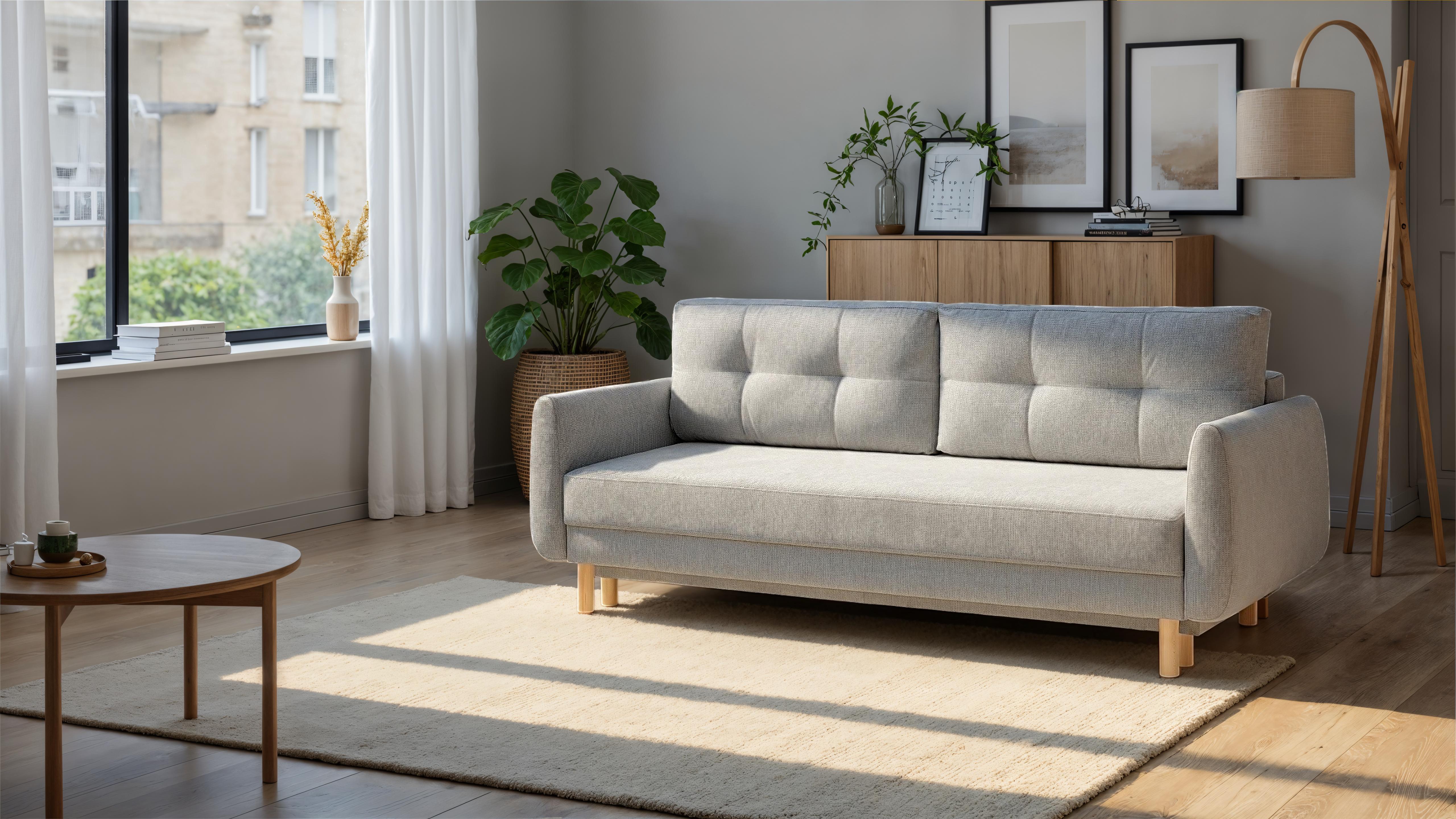 Sofa 3-osobowa, rozkładana z funkcją spania i pojemnikiem na pościel.