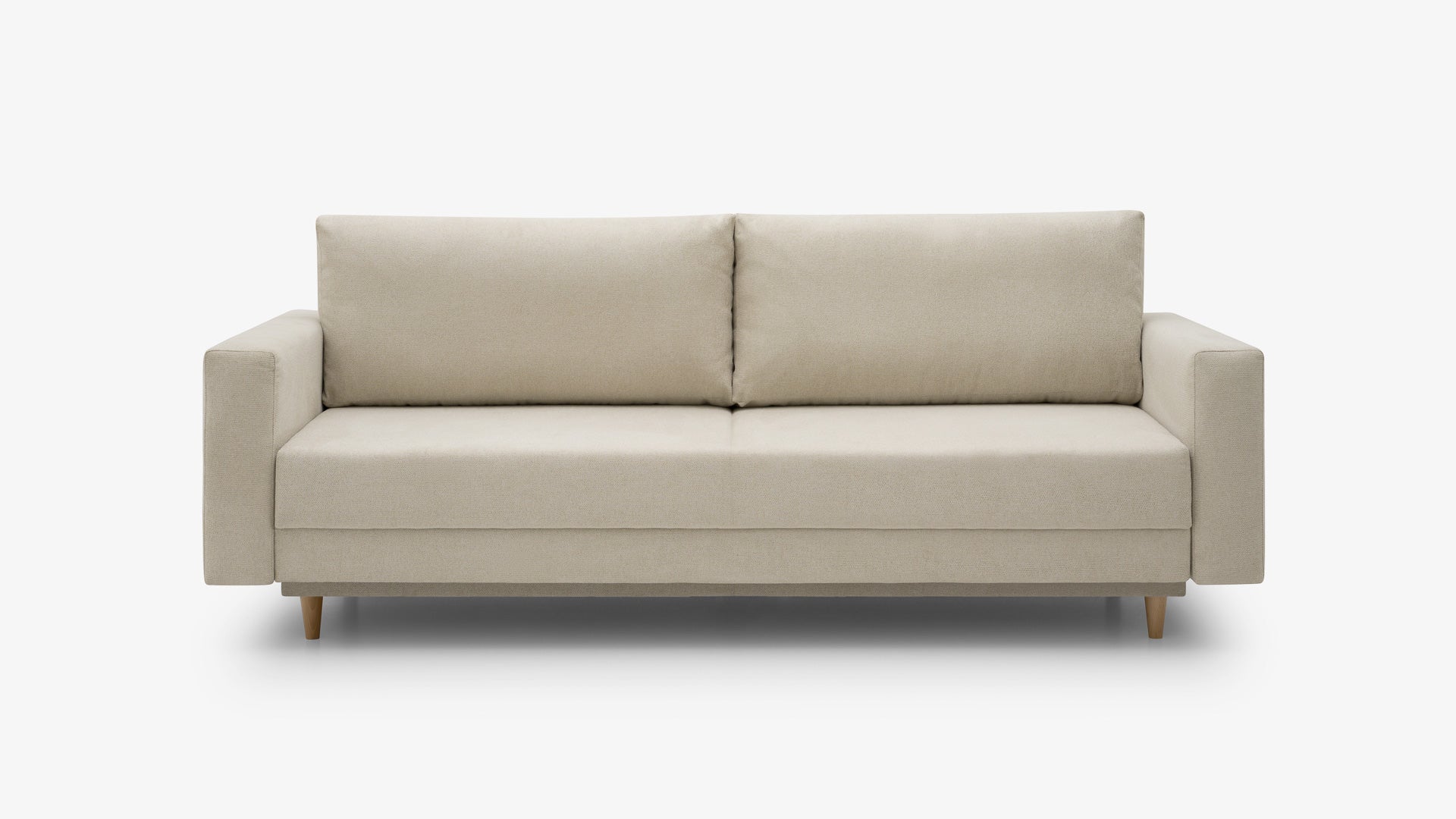 Sofa 3-osobowa, rozkładana z funkcją spania i pojemnikiem na pościel.